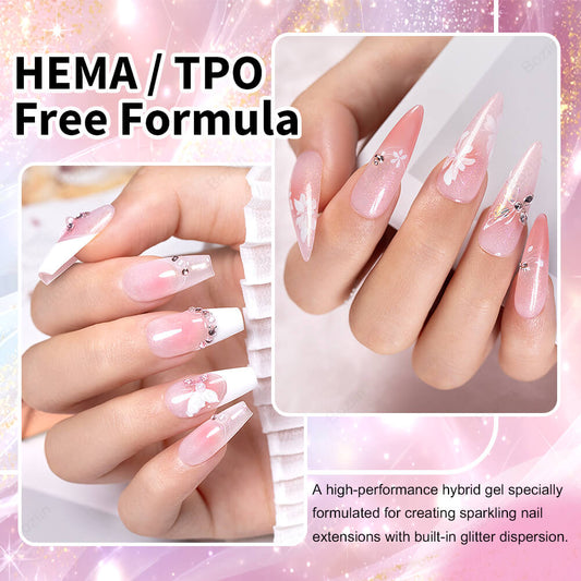 BOZLIN 36 Colors Glitter Nail Extension Builder Gel Hema Free