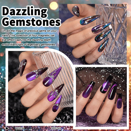 BOZLIN 24 Colors Light Ruby Cat Eye Gel Polish with 4 Colors Effect