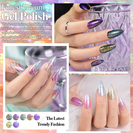BOZLIN 24 Colors Chameleon Glitter Aurora Flakes Gel Polish